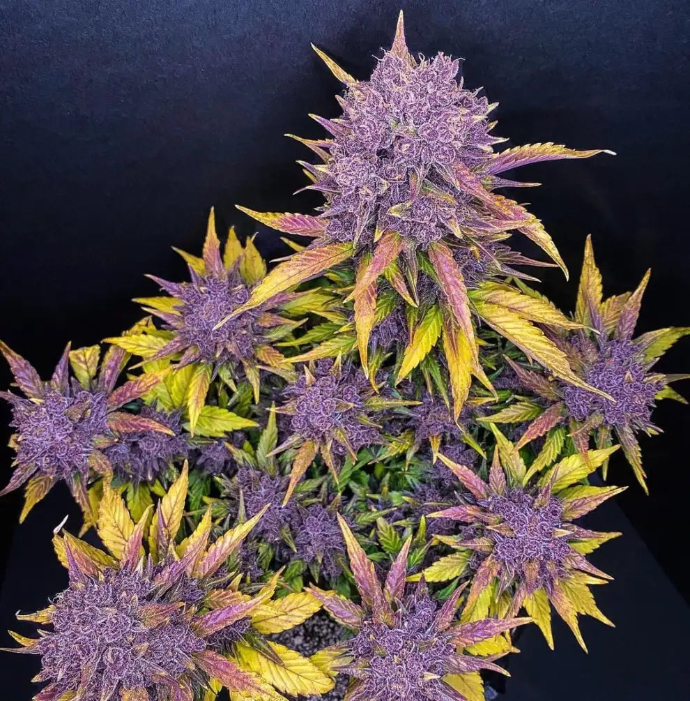 Manche Sorten sehen auf Fotos besser aus als in echt. Purple Lemonade Auto gehört nicht dazu. In der Realität sind die Buds noch intensiver gefärbt als auf jedem Bild: tiefes Violett, durchzogen von hellgrünen Zuckerblättern, leuchtend orangefarbenen Stempeln und - das Besondere - rosa Trichomen, die der gesamten Pflanze zur Erntezeit einen rosafarbenen Schimmer verleihen. Keine andere Autoflower im KANNOBA-Katalog bietet eine vergleichbare Farbpalette.